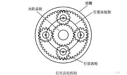 例如,發(fā)動機(jī)接太陽齒輪,行星齒輪架與傳動軸連接,使齒圈固定,或受一定的約束(即轉(zhuǎn)速為零或某一定值),則可實現(xiàn)不同的傳動比i>1的減速。
